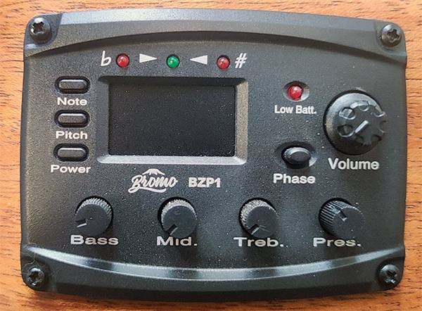 Snímač a elektronika jsou Bromo BZP1 s 4pásmovým ekvalizérem (bass, mid, treb, pres) a vestavěnou ladičkou.