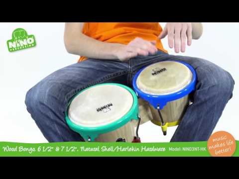 NINO3NT-HK jsou kvalitní dřevěná bonga s velice všestranným zvukem za dostupnou cenu. Hravé barevné provedení 'Harlekin' jistě ocení nejen děti. Součástí je ladící klíč. Bonga mají zaoblené hrany pro pohodlnou hru. Na blány je použitá výběrová bůvolí kůže. Průměry: 16,51 cm a 19,05 cm. Barevné provedení: Natural / Harlekin