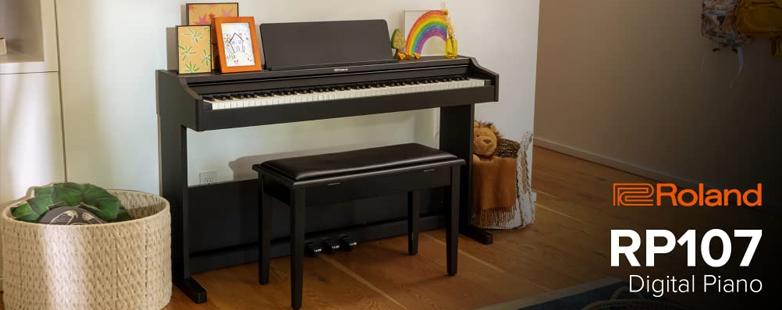 Roland RP 107 BKX je digitální piano s kladívkovou klaviaturou PHA-4 s funkcí Escapement a povrchem bílých kláves ze syntetické slonoviny. 256 hlasá polyfonie. 15 zvuků včetně klavírního zvuku SuperNATURAL Piano. Výukový systém s 287 skladbami pro učení. Možnost připojení k iOS/Android chytrému zařízení s aplikací Roland Piano App. Bluetooth pro bezdrátové propojení. Digitální piano s kvalitní klaviaturou a zvuky vhodné pro začínající a středně pokročilé hráče.