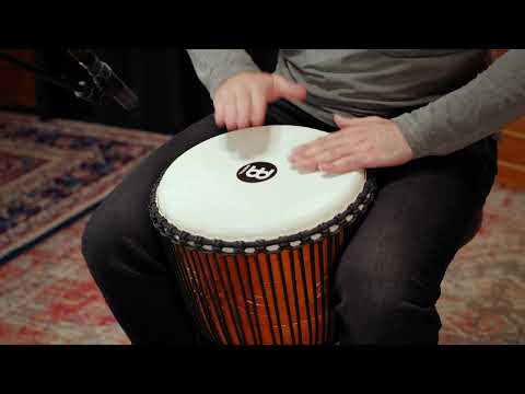 Djembe Meinl ADJ2-L + Bag je mahagonové djembe ze serie Moon Rhythm. K ladění slouží celkem třicetpět čtyřmilimetrů silných provázků, které mají správně vlastnosti zamezující časté rozladění. Toto djembe ma průměr 12 " a výška korpusu je 24 ". Blána je vyrobena z přírodní kozí kůže. Součástí je nylonový polstrovaný obal Meinl MJDB.