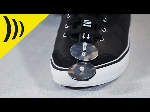 Schlagwerk KRIX10 The Rhythm Step je pravděpodobně nejjednodušší a nejefektivnější bicí hudební nástroj na světě. Stačí zasunout za tkaničky u bot a hrajete. Je to 16 cm dlouhá kovová tyčka osazená dvěma páry ocelových plíšků. Vhodný pro všechny velikosti bot :-)