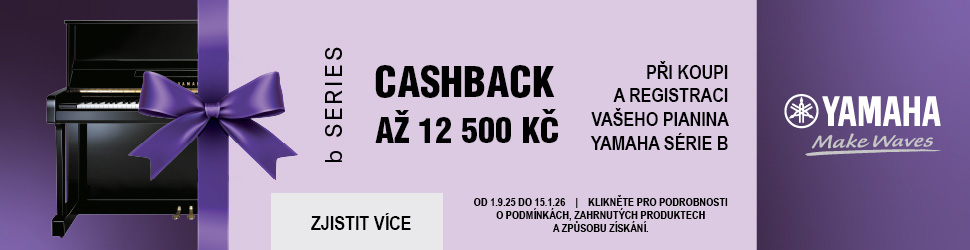 Yamaha nyní přichází s exkluzivní CASHBACK akcí, při které můžete ušetřit až 12500 Kč při koupi jakéhokoli pianina ze série B Série.